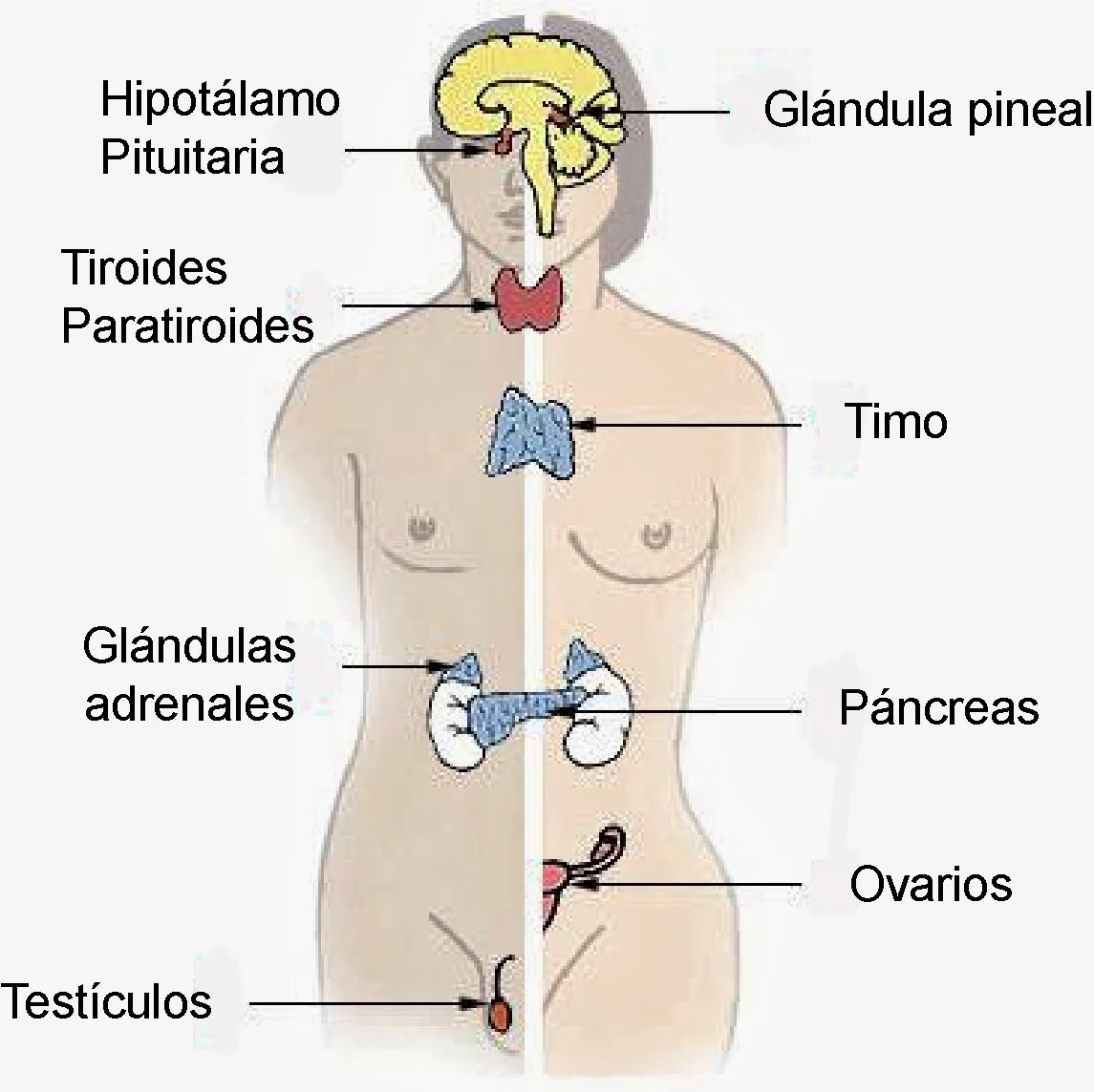 El sistema endocrino, en conjunto con el sistema nervioso, encargado de integrar las funciones de los diversos sistemas de órganos para mantener la homeostasis.